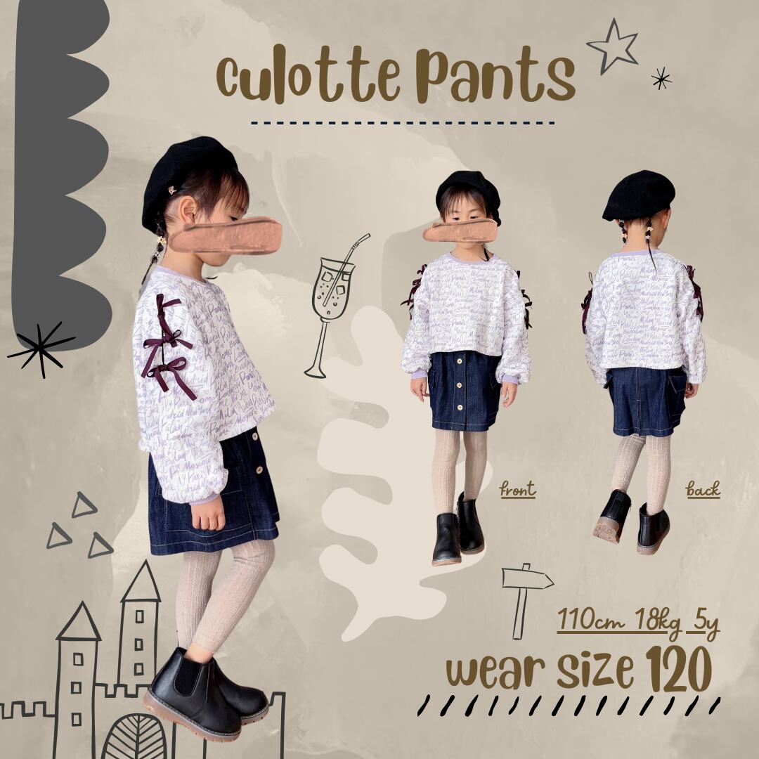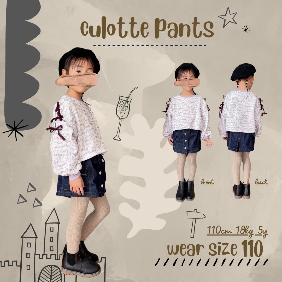 - ̗̀ 即納 ˊ˗ ⌇ culottes pants ✕ black denim⌇ black stitch⌇120‐150size